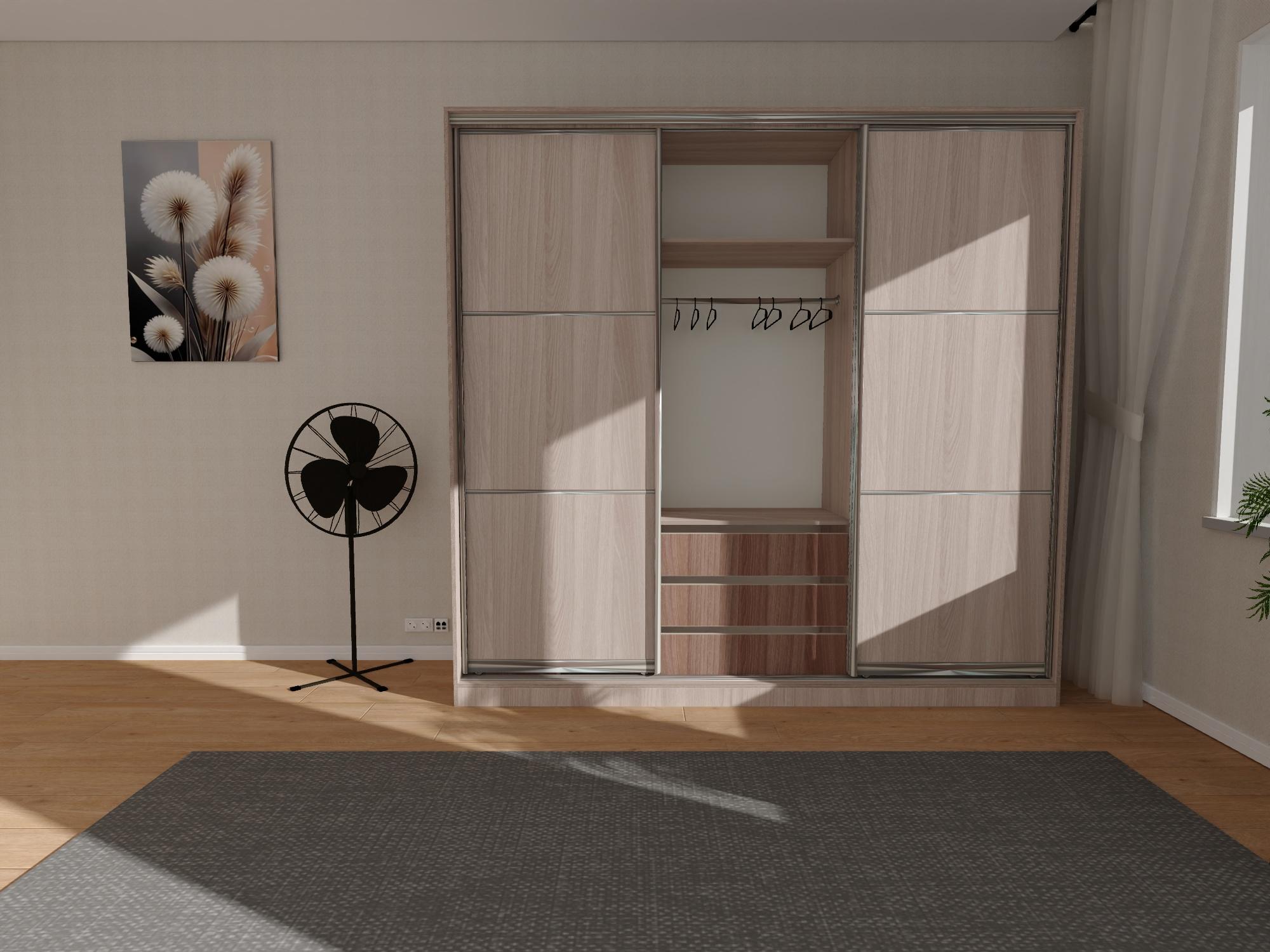 Арт.493 Цвет и размер можно изменять. Двери-купе системы Версаль, с возможным наполнением ЛДСП/зеркало. Цвета профиля: шампань, коньяк, серебро, золото. Шкаф изготовлен из ЛДСП 16мм, труба d25 мм., ящики на шариковых направляющих, кромка пвх 04 мм.